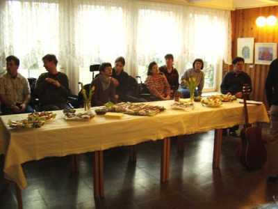 In Anwesenheit von Vertretern der Leitung des Johannesstiftes (Hr Arentzen und Hr Kern), Mitarbeitern von Nebo, Pastoren und Mitgliedern des GKR aus Wichern-Radeland, dem Vorstand des VdG und weiteren Gästen ist in Räumen der Wichern-Radelandgemeinde eine Bilderausstellung von Bewohnern der Behindertenhilfe Nebo eröffnet worden. Nach der Begrüßung durch Pfarrer Kuhnert und Fr Ebeling (Nebo) lud die Musikgruppe von Nebo zu bekannten Volksliedern zum Mitsingen ein. Bereits nach kurzer Zeit hat ein großer Teil der ausgestellten Bilder einen neuen Besitzer gefunden. Einige Aufnahmen von der Veranstaltung möchten wir Ihnen nicht vorenthalten. |