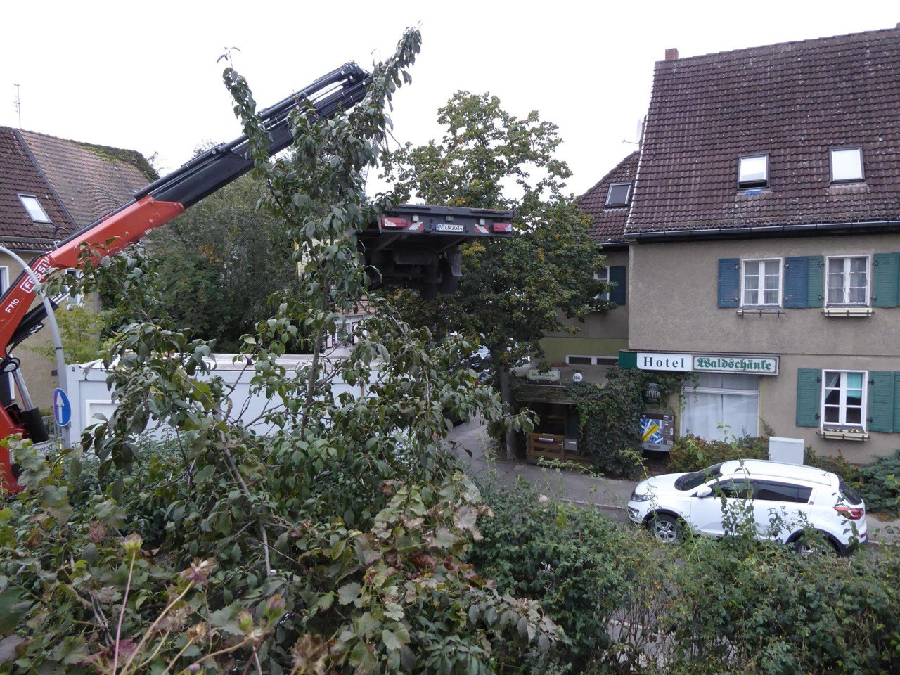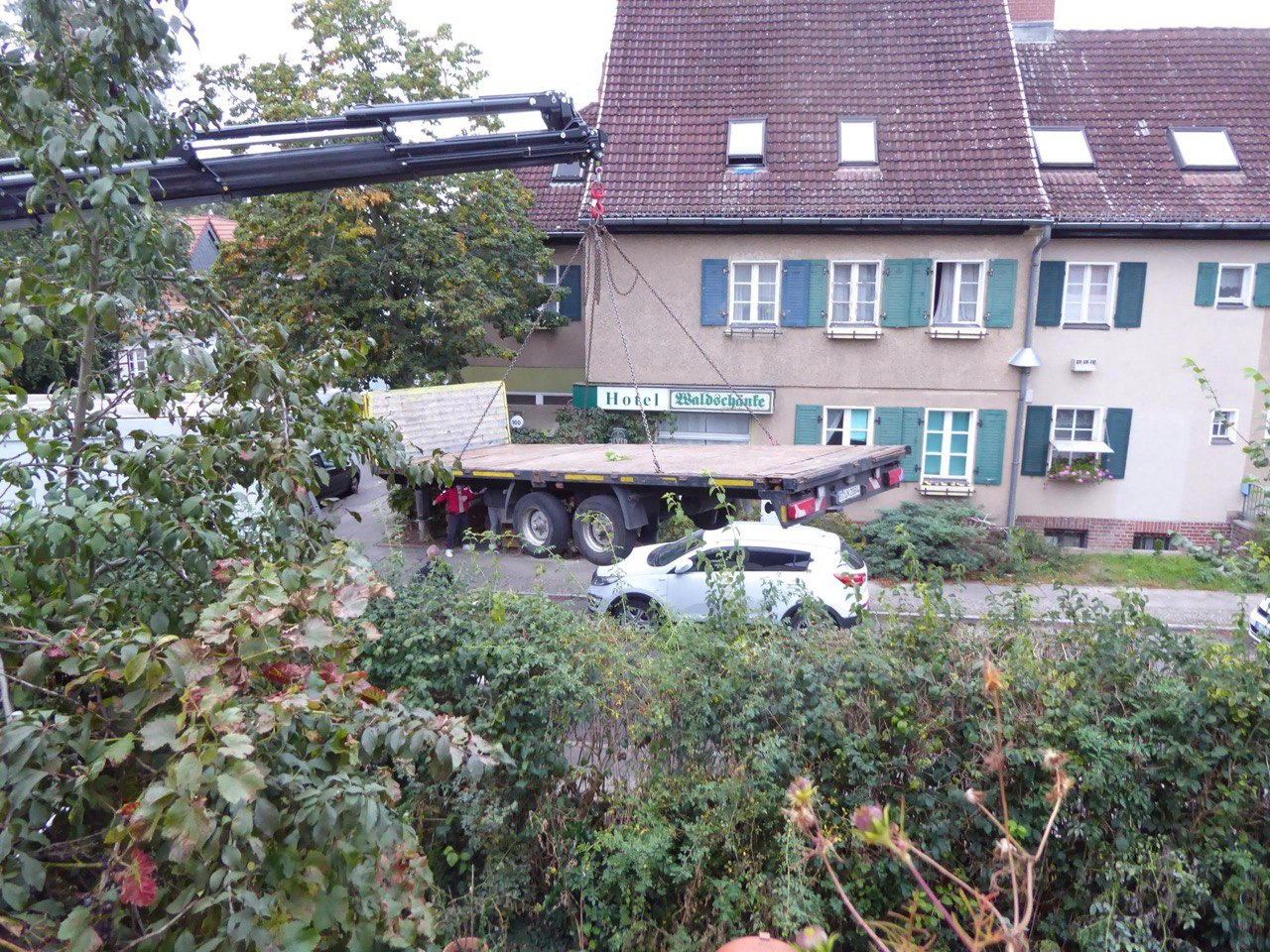 sehen ist mußte erst der Anhänger um die Ecke gehoben werden. Das